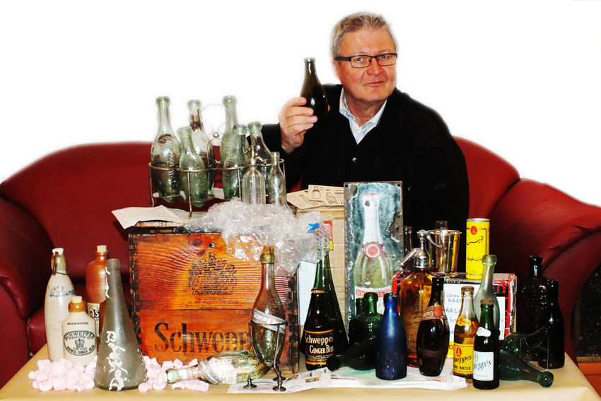 As an ebay-bottle-digger and soda-popper „Dr. h.c.Schweppes“ I have finished my first terms. I am in touch with many collectors and communities and from the details they provide me with I learn something new every day, albeit realizing that not everything that can be found on the homepages and Wikipedia is true. Also, that there is so much more to be discovered. From all over the world I receive bottles, memorabilia and documents for my small, private Schweppes museum in the native country of Jacob Schweppe. Maybe one day this collection will adorn the lounge of a famous hotel in Berlin. Or London? So: Welcome, bienvenue, bienvenida – please enjoy the hands-on Schweppes story.