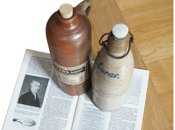 As opposed to the countries of the former British Empire, experts on bottle-digging, diving and collecting are very rare in Germany. To make up for this, “Germania” was already part of the Roman Empire of Julius Cesar since the 50s before Christ. I was born directly behind the 348 miles long Limes. When I was a child I used to dig for pieces of ‘Terra Sigillata” , the red shards of the Roman china. It can be found under www.terra-sigillata-museum.de in good condition. The fine art of „Cologne Glass“ can be marveled at under www.museenkoeln.de/roemisch-germanisches-museum/ next to the cathedral. The imperial sources of fizzy waters constituted one of the three most important parts of Roman life: baths, wine, love. However, 2000 years ago such world famous mineral waters like Appolinaris, Fachingen, Pellegrino, Pyrmont, or Selters were fed into the swimming pools of the spas.