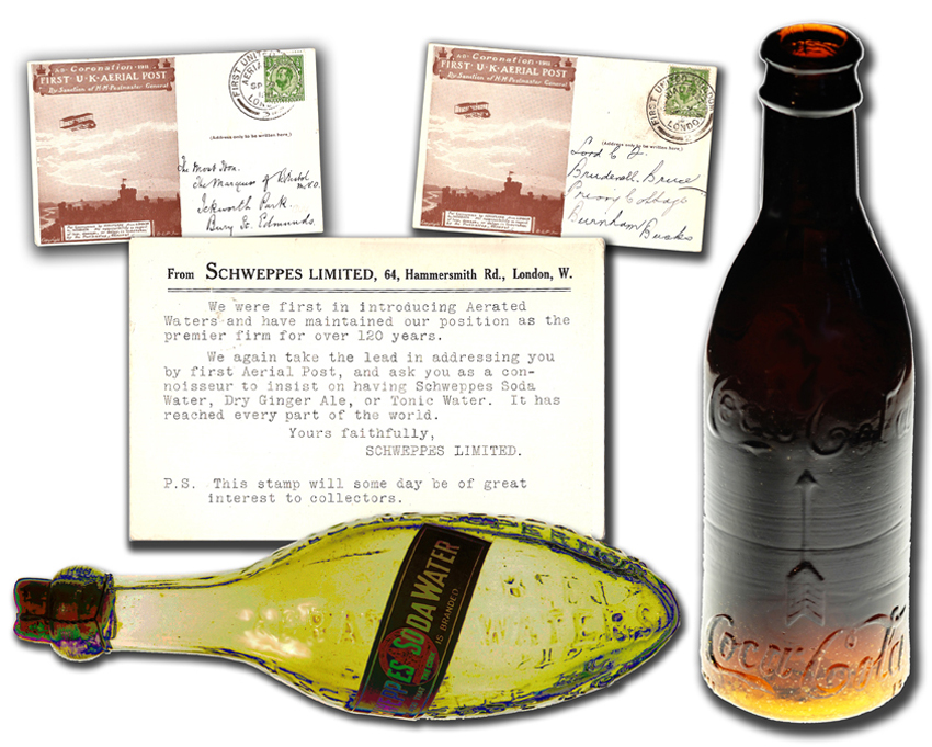 In 1903, regular point-to-point flights became a possibility. In 1911, the twenty mail-carrying flights of the Coronation Aerial Post between London and Windsor were on the same basis. Schweppes sent a suitable message to their customers: “We were first in introducing Aerated Waters and have maintained our position as the premier firm for over 120 years. We again take the lead in addressing you by First Aerial Post, and ask you as a connoisseur to insist on having Schweppes Soda Water, Dry Ginger Ale or Tonic Water. It has reached every part of the world. Yours faithfully, SCHWEPPES LIMITED.“ The rest is a new story.