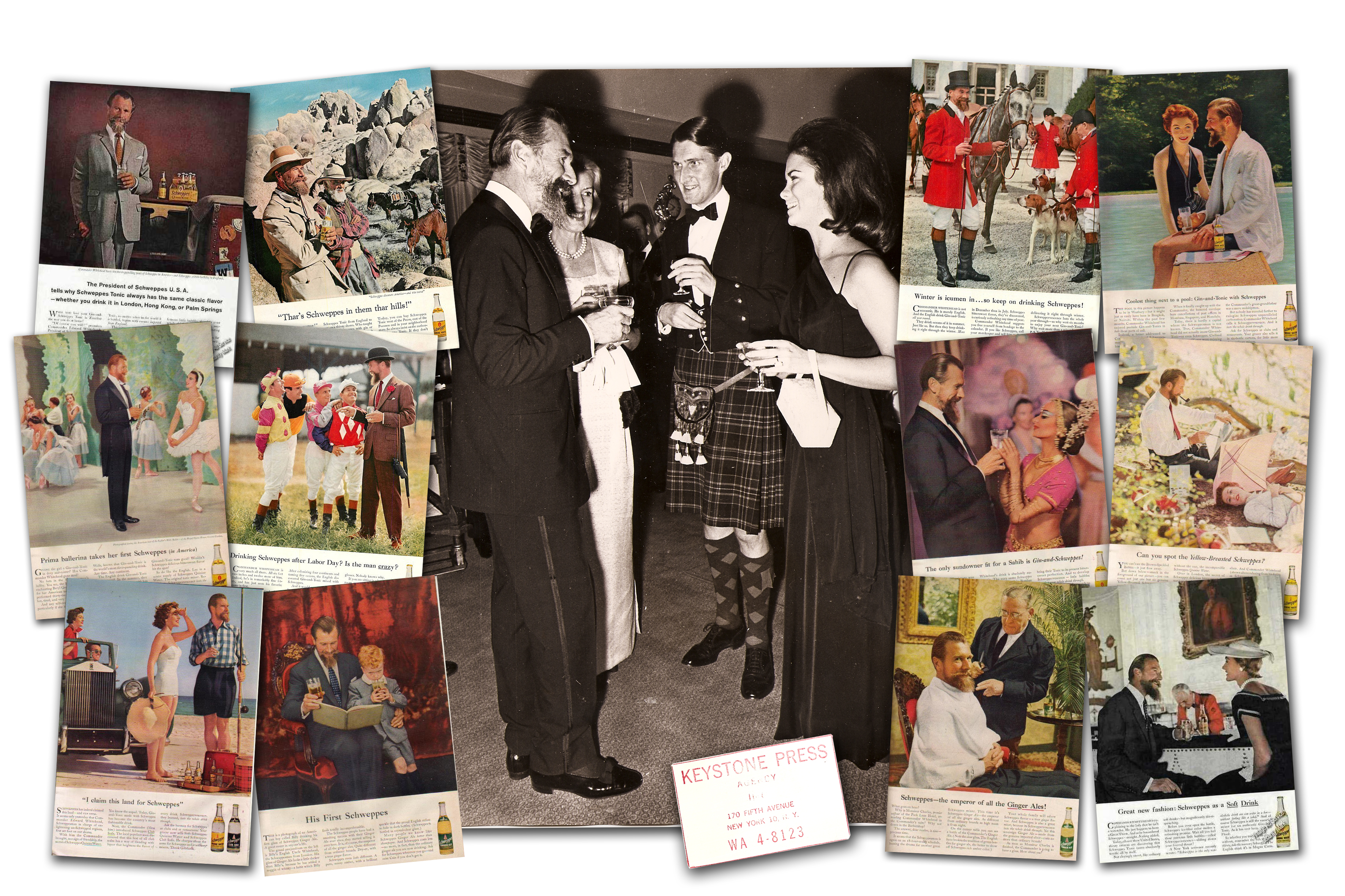 At the beginning of the 20th century the brand name J. Schweppe & Co. was finally turned into “Schweppes”. The fizzy phonetics of the founder’s name is the copy platform of internationally successful campaigns, like “All the best siphons say Sss…ch…weppe…ss..-“ (1931) and “Schweppervescence lasts the whole drink through” (1946)