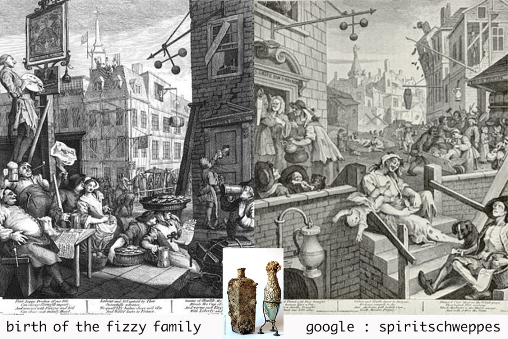 In 1851, the same year as Hogarth’s “Gin Lane and Beer Street”, the torpedoes of J.Schweppe and Co. refreshed the Great Exhibition in London and henceforth the rest of the world with sparkling soda.