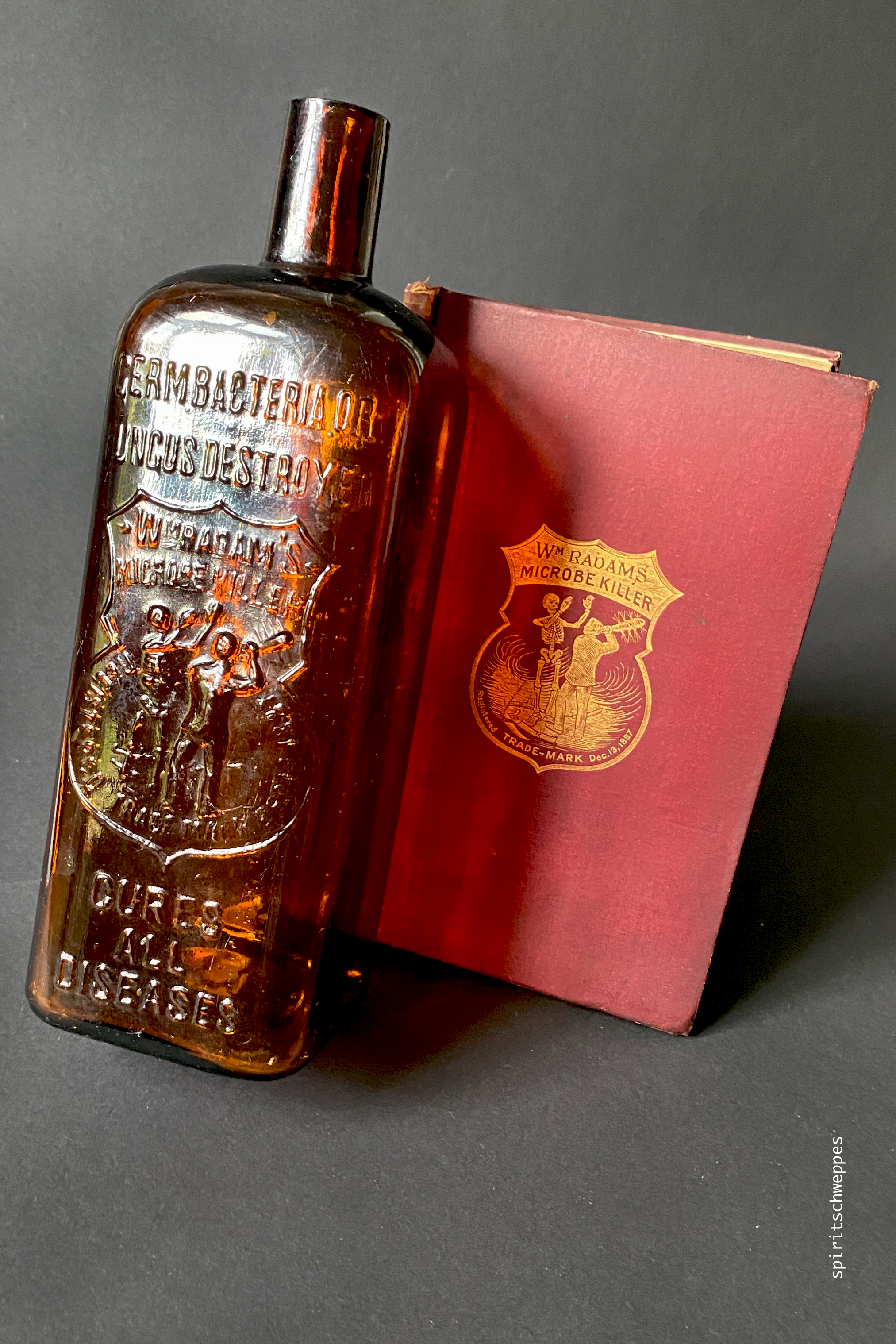 The embossing on the bottle says: GERMBACTERIA OR FUNGUS DESTROYER • WM.RADAM´S MICROBE KILLER • CURES ALL DESEASES • REGISTERED TRADE MARK DEC. 13.1887