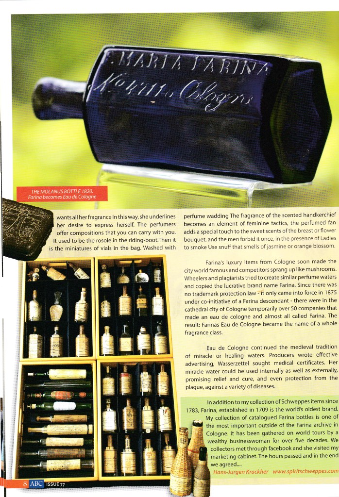 My marketing cabinet spiritschweppes.com is all about innovation, entrepreneurship and global success – illustrated by examples of historical water marketing. The international trade magazine ABC Antique Bottle Collector from the summer of 2019 has dedicated a four-page article to the section “Aqua Mirabilis – Waters with effects”. Thanks to early-glass expert Mark Nightingale, http://www.antiquebottlecollector.com